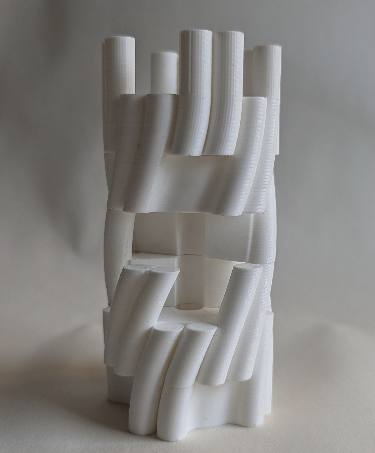This master studio focuses on the design and the production of a large scale parametric structure based on 3D clay printing. 1:1 prototyping is an essential component of this studio, allowing students to experience all parts of the fabrication and assembly process. The studio follows a holistic approach: from design to fabrication. Students follow the steps from computational design, technical detailing, project management and logistics, the fabrication of the elements and the assembly of the full large-scale structure on the campus.